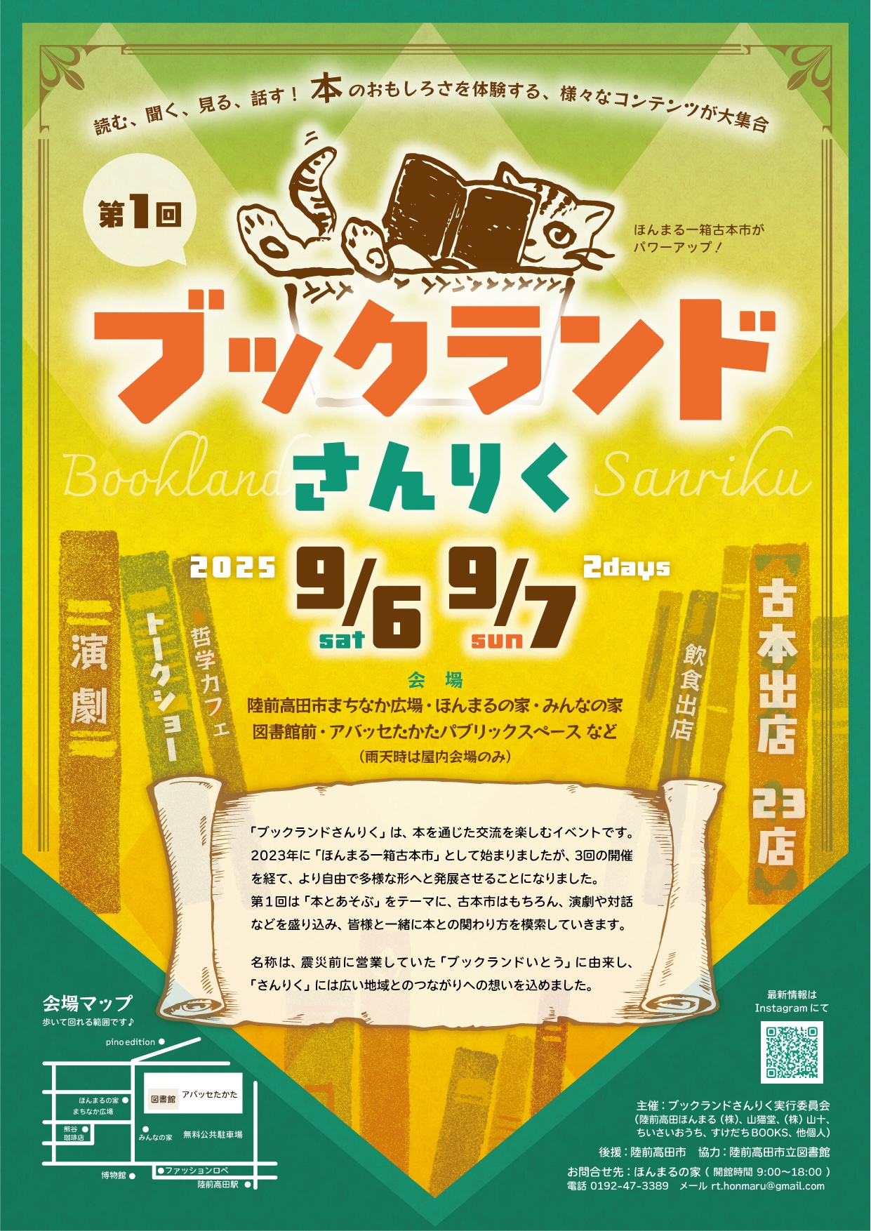 「ブックランドさんりく」は、本を通じた交流を楽しむイベントです。2023年に「ほんまる一箱古本市」として始まりましたが、3回の開催を経て、より自由で多様な形へと発展させることになりました。